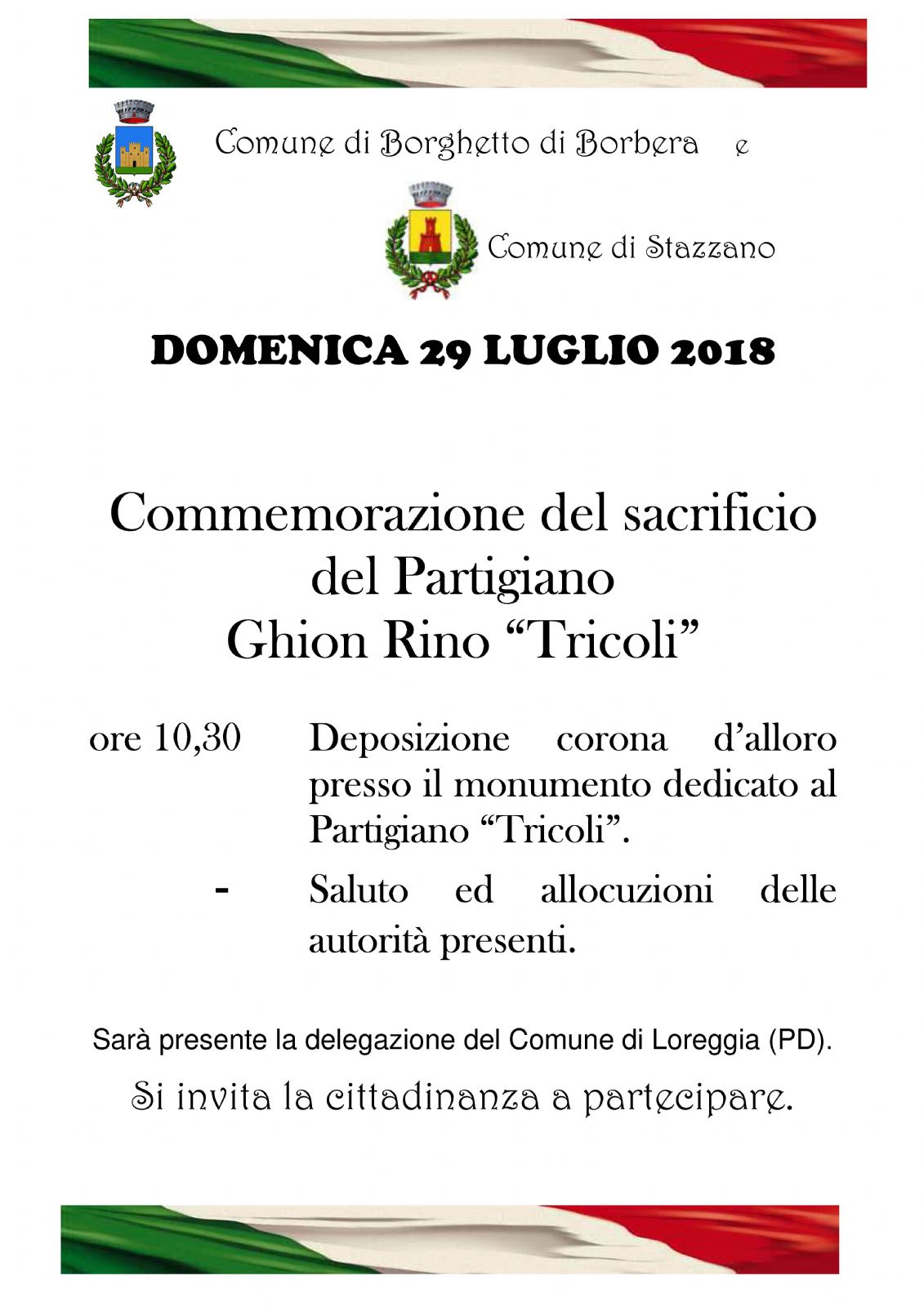 Commemorazione del sacrificio del Partigiano Ghion Rino “Tricoli” il 29-07-2018