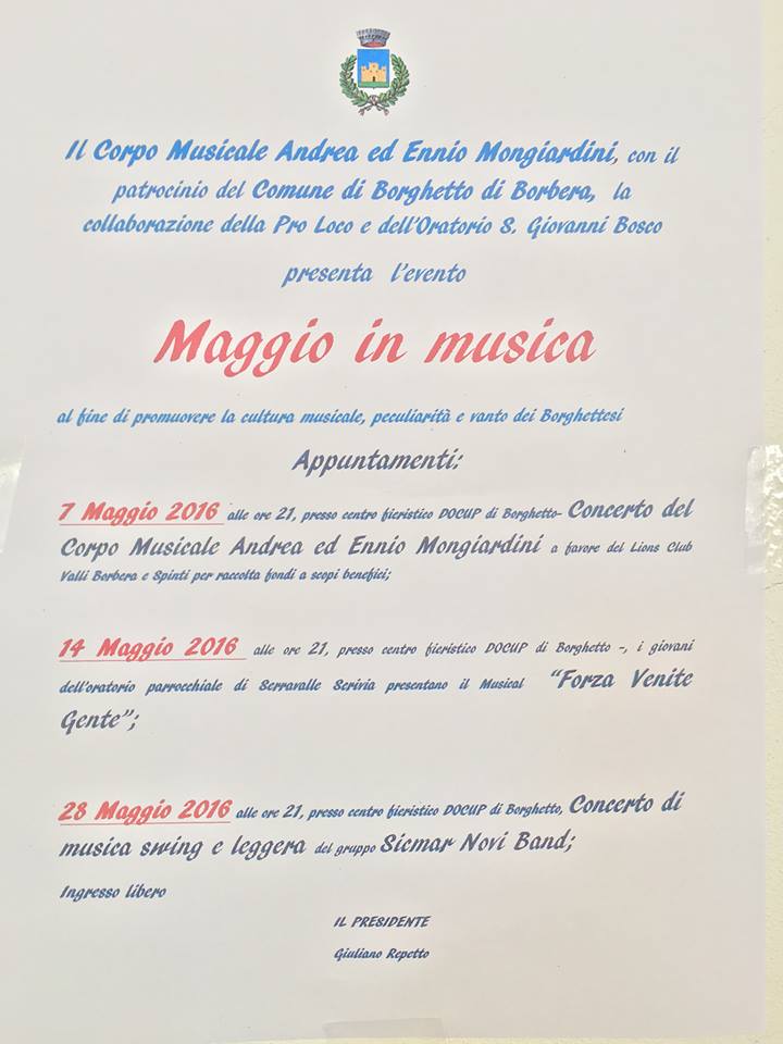 Domenica 7 maggio ore 21 presso Centro fieristico DOCUP di Borghetto di Borbera concerto della Banda A.E .Mongiardi .