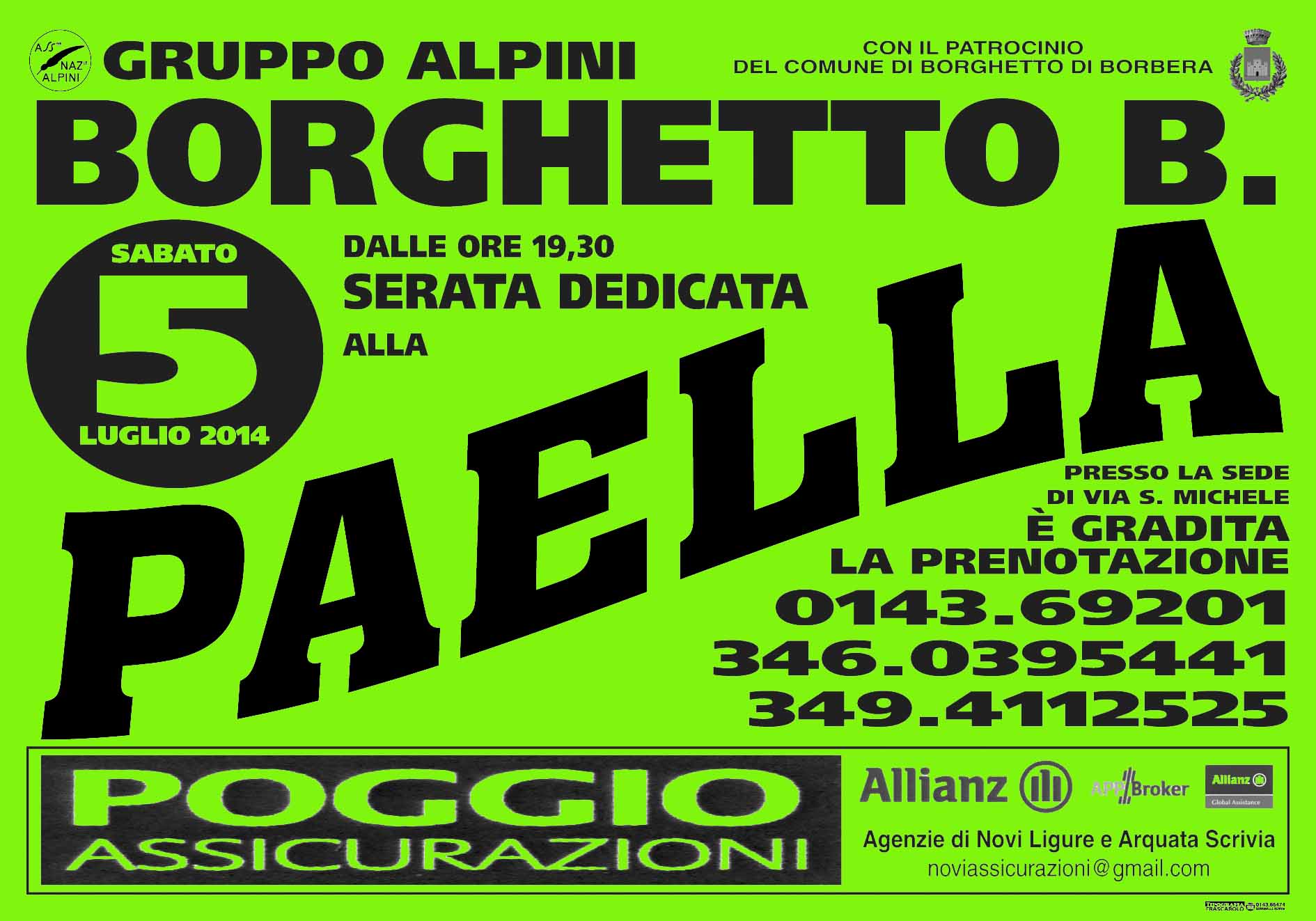 Il gruppo ALPINI di BORGHETTO DI BORBERA con il patrocinio del Comune in "una serata dedicata alla PAELLA".