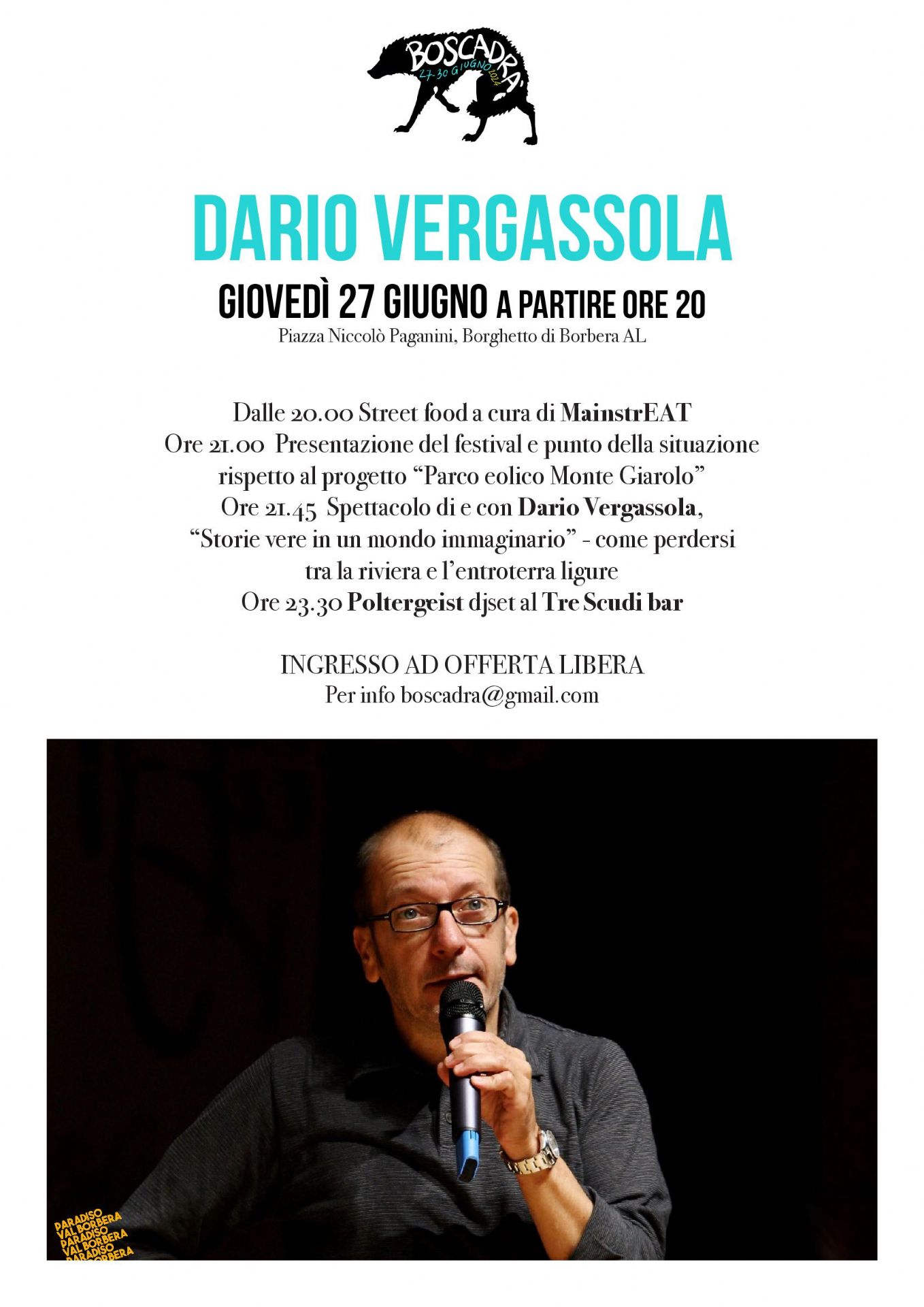 Evento di e con Dario Vergassola giovedì 27 giugno a partire ore 20 in piazza della Chiesa