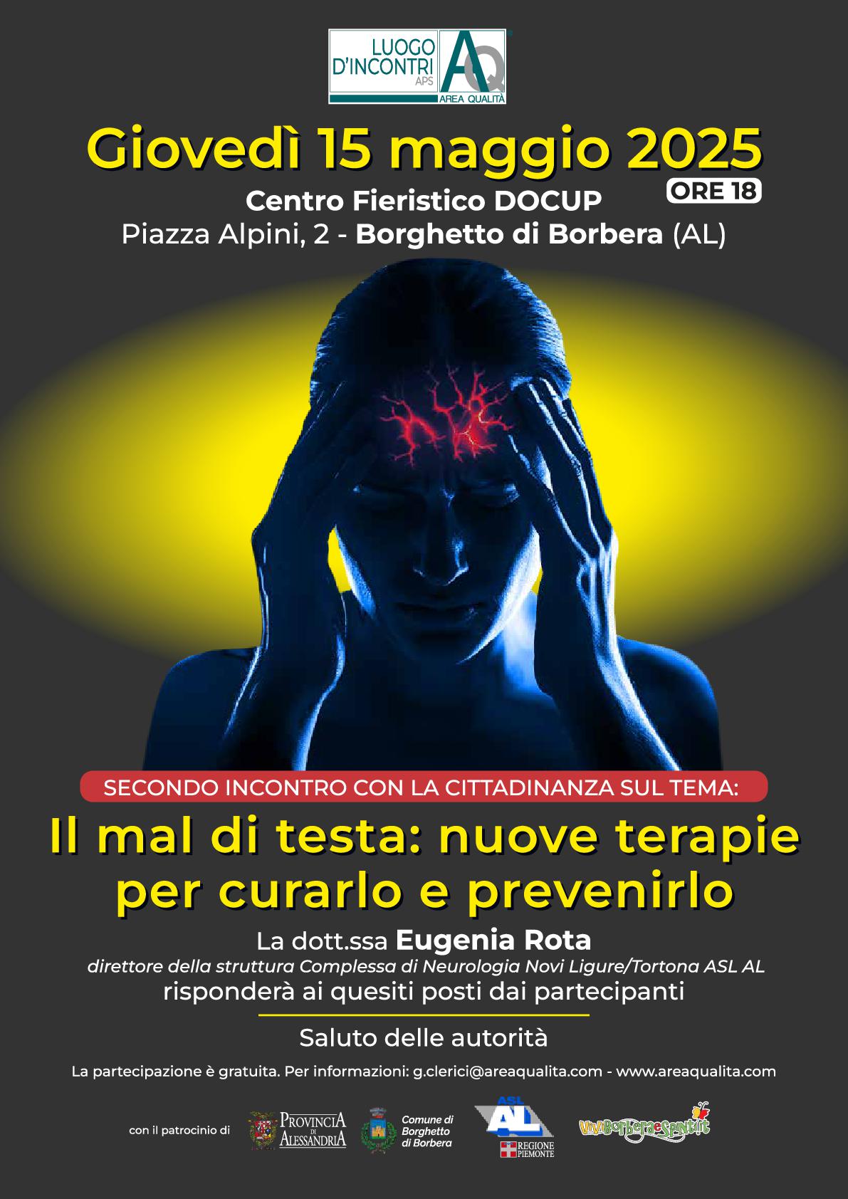 Incontro con la cittadinanza sul tema “Il mal di testa: nuove terapie per curarlo e prevenirlo” giovedì 15 maggio 2025 ore 18.00 presso Centro fieristico.