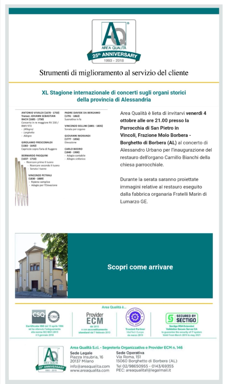XL Stagione internazionale di concerti sugli organi storici della provincia di Alessandria - 4 ottobre 2019